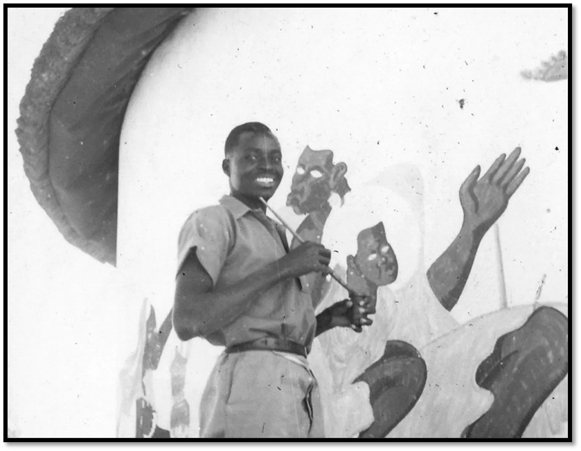 Livingstone Sango, seen above painting a mural at Cyrene Mission in the 1940’s, became a prominent taxidermist with the National Museum in Bulawayo.