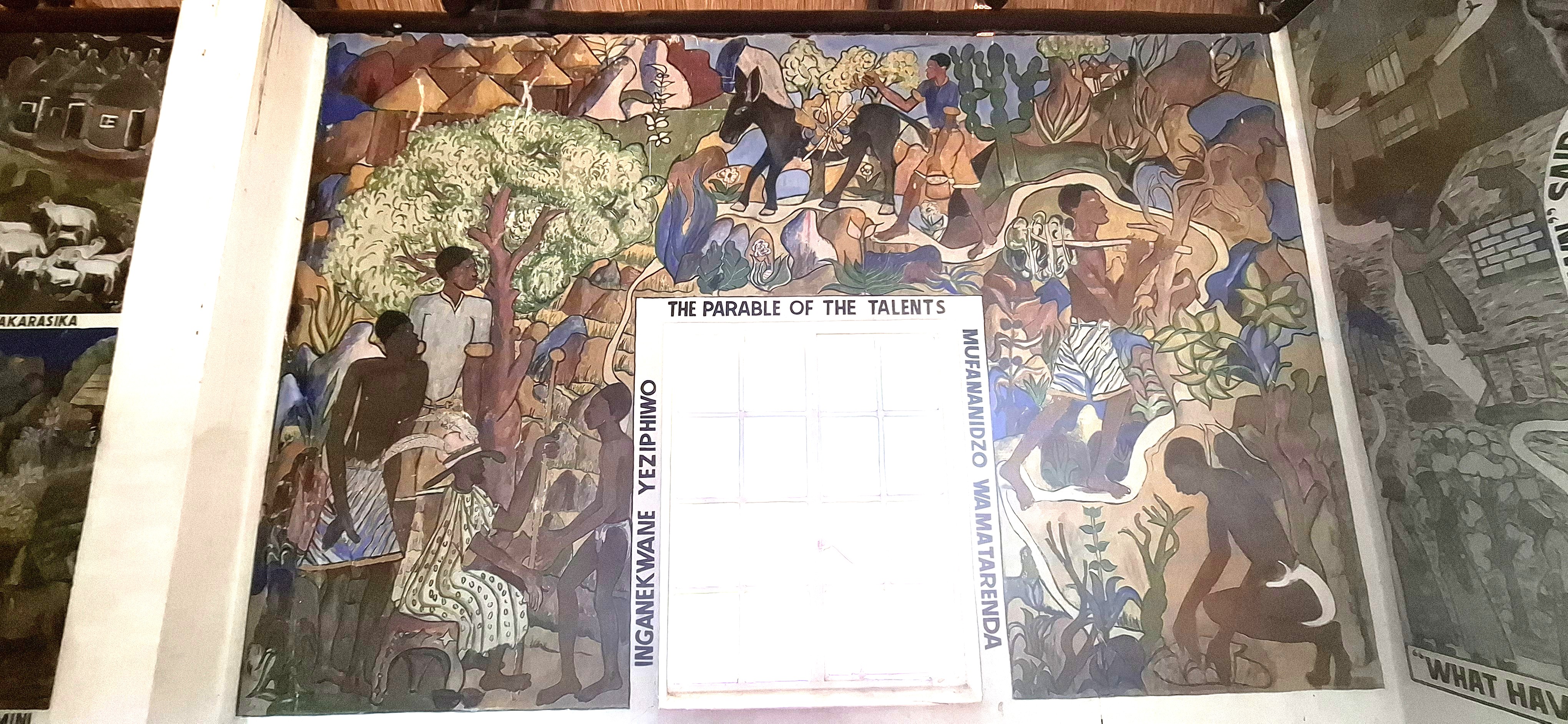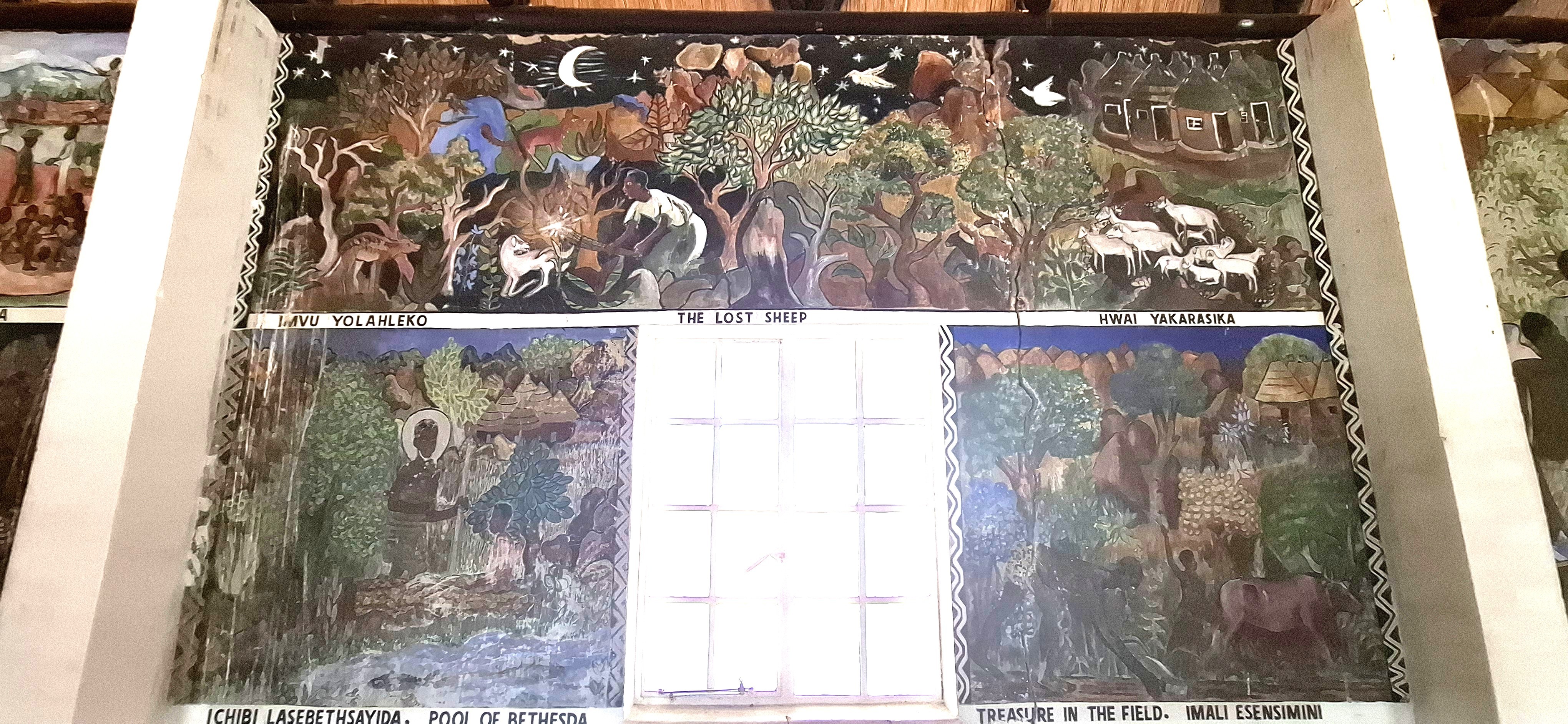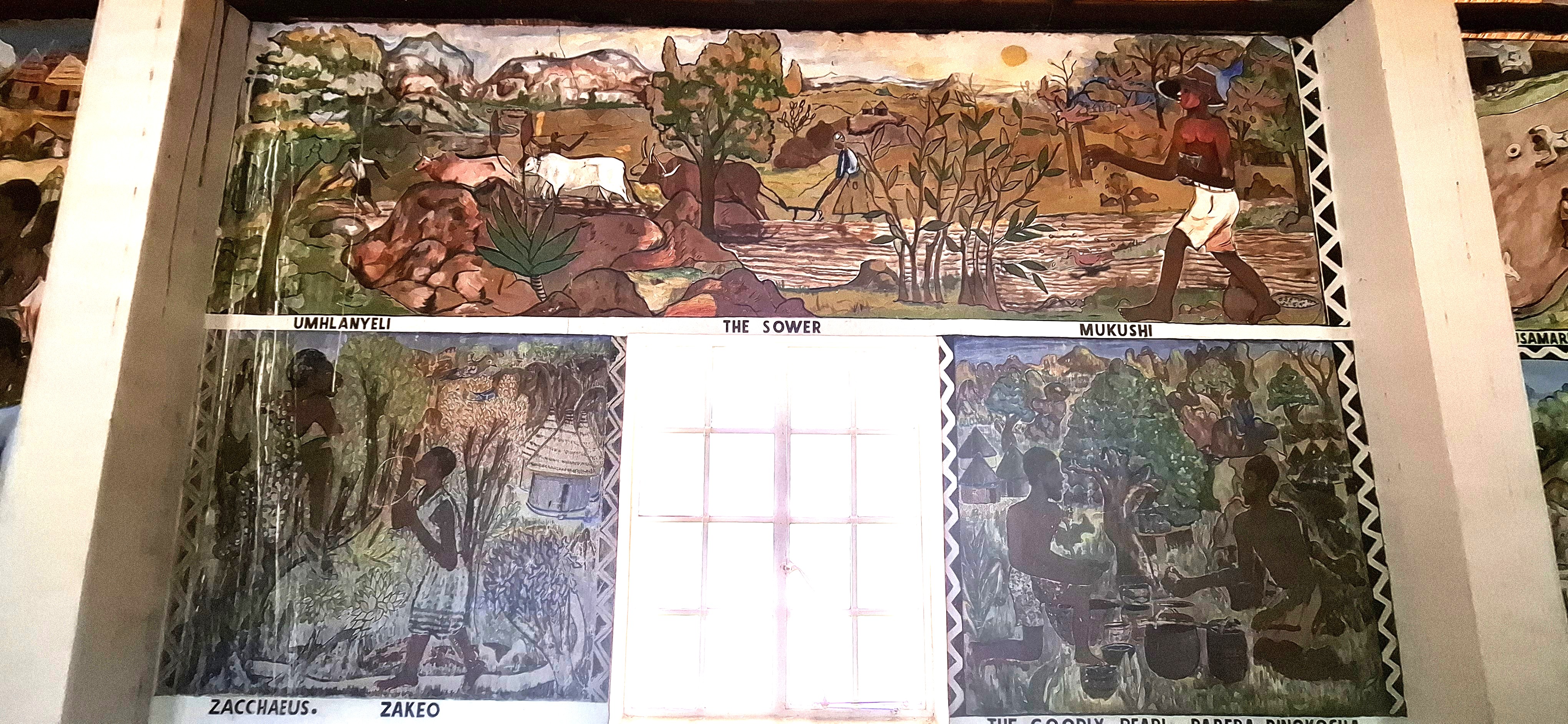 The chapel remains as a living memorial of an earlier era. Its many murals mirror the artists’ environment, with Matobo rocks and rural kraals in the background. They are unique, and visitors come from all over the world to view them.