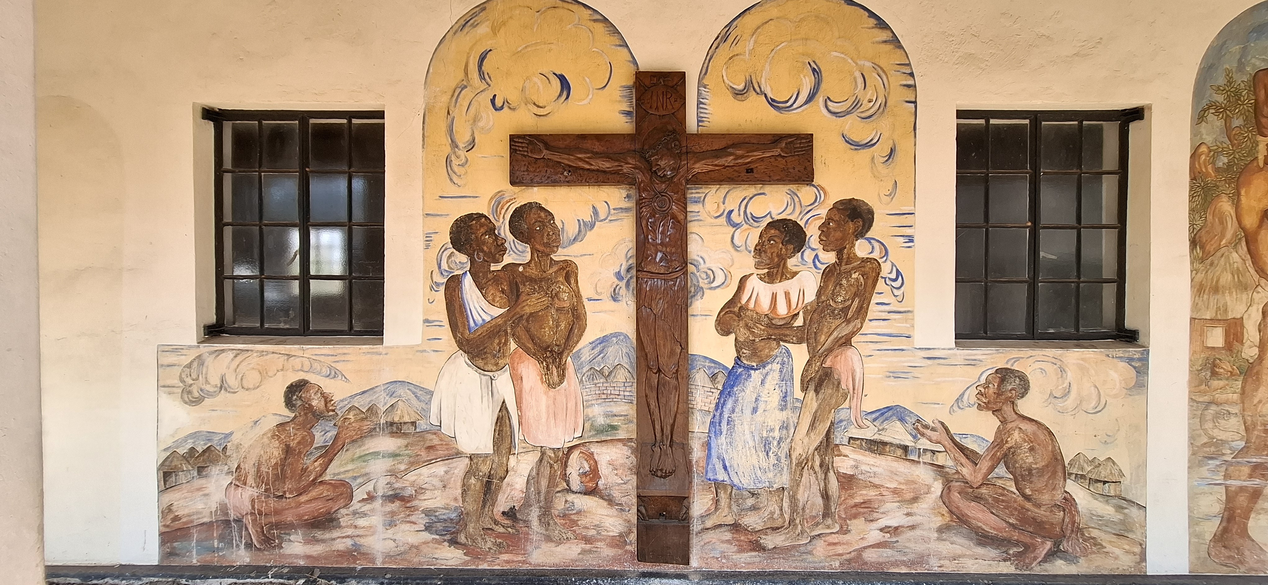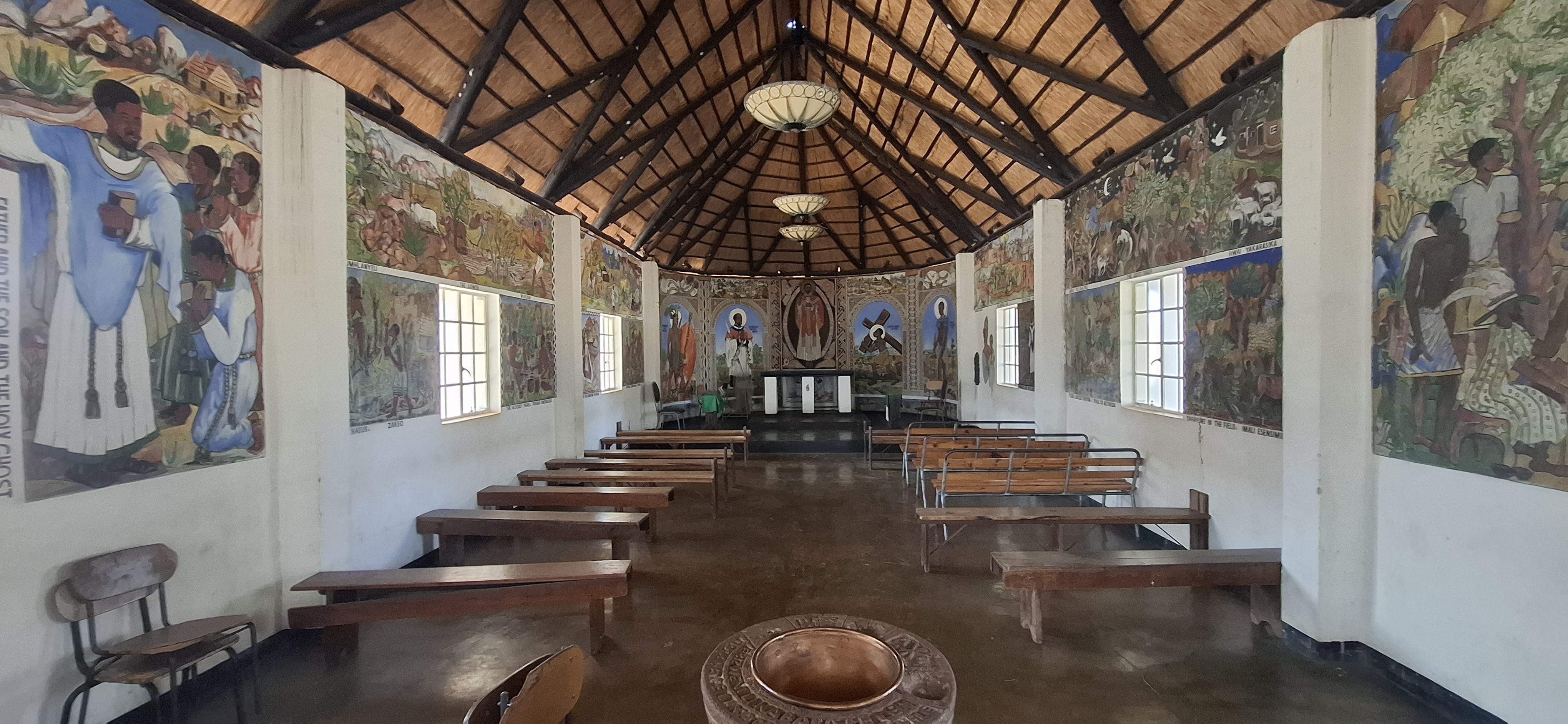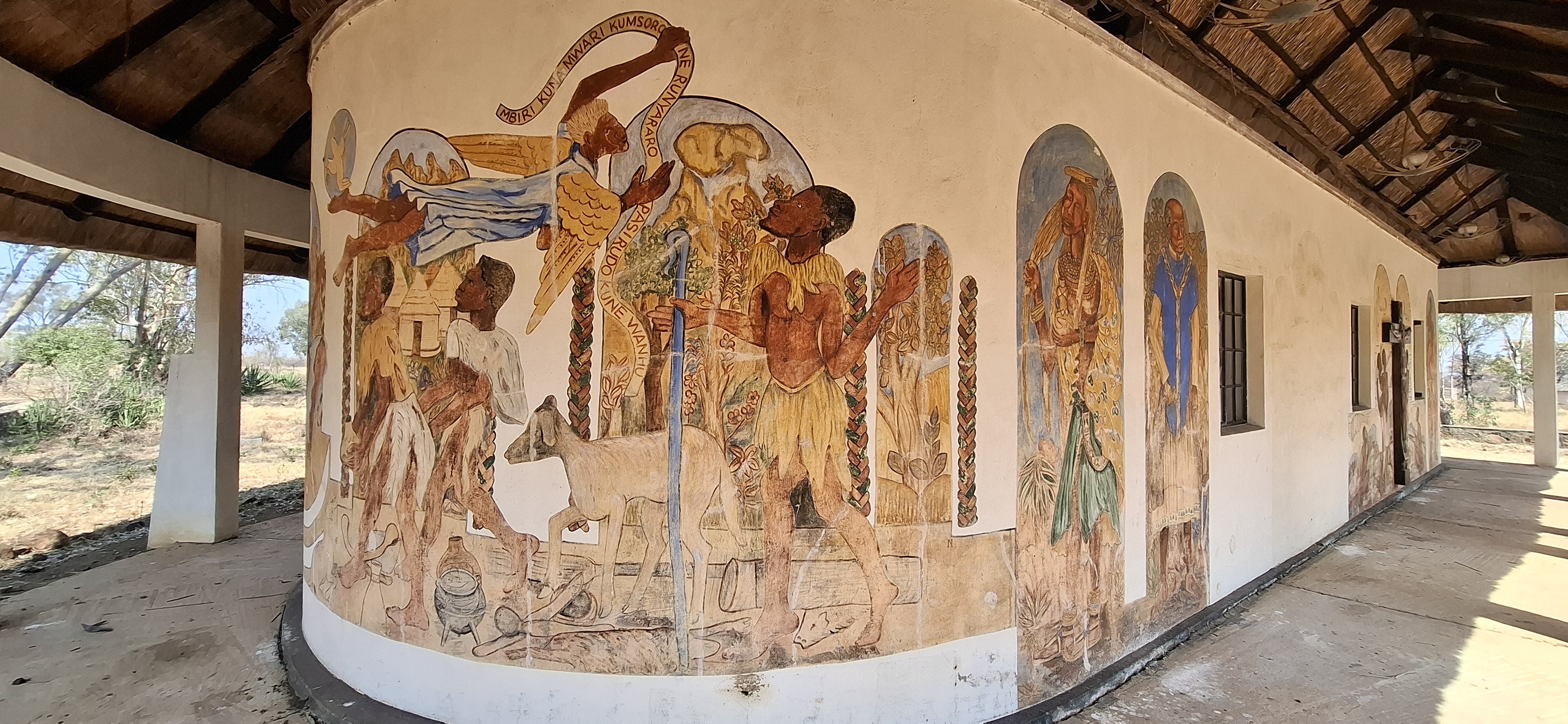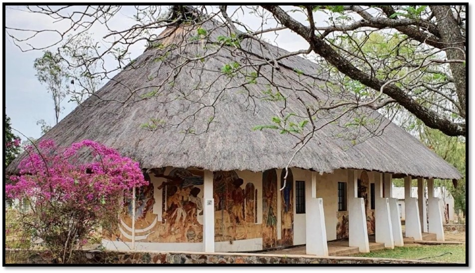 The chapel remains as a living memorial of an earlier era. Its many murals mirror the artists’ environment, with Matobo rocks and rural kraals in the background. They are unique, and visitors come from all over the world to view them.