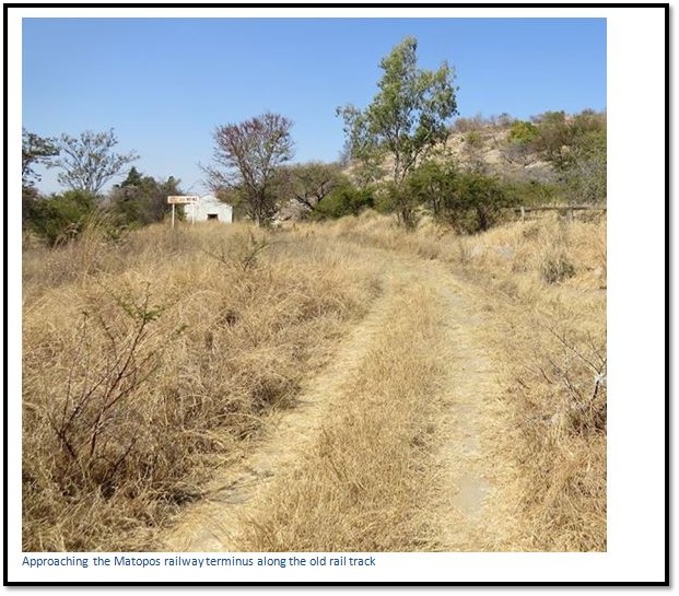 The terminus, now in a very dilapidated state, is on the old rail route into the Matobo Hills. By starting at the Cyrene Mission, it is still possible to follow the route of the old railway line, and see the approach to the hills that was so familiar to visitors in the early twentieth Century. Surrounding the old Matopos Terminus are the old houses, the Hotel, the arboretum and offices of a once thriving “Matopos” hamlet. There is untapped potential in this historic site. National railways of Zimbabwe restored the platform and signage in 1997 as part of the railway's Centenary celebrations, but nothing has been done since.