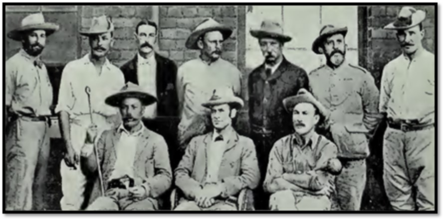 Earl Grey, the Administrator of Matabeleland was away on leave; the Surveyor-General Andrew Duncan was acting Administrator and formed a council of defence made up of the individuals below. Fortunately, they all had a good deal of military experience.[6]