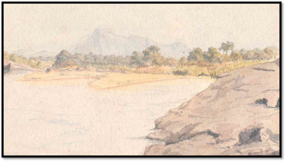 I am very sorry that you don’t think Weymouth will be possible this year, but I hope you won’t allow the time to drift by without getting somewhere for the summer – any change would be better for some of you. I seem to have lost the art of writing letters when I’m on the march. I suppose it is that the novelty of the whole thing has worn off, and I take no notice of what used to surprise me. Even here, when I am making a road through a country untraveled except at rare intervals by some Boer hunter, there seems to be nothing to chronicle. This place only differs from our other halting places in that the river is much bigger, and that there are some very fine trees and splendid grazing along its banks. There must be plenty of lions about, although we never hear them, for every stray animal gets killed within a few hours. There is very little game in the Banyai country, which is thickly inhabited. I did a sketch at the drift here yesterday, but as it had to include several figures, it was no good. There is an energetic photographer with us however[xii] who takes photos on every possible opportunity and who took several of the drift and others of the scenery. I hope his plates may not get broken, he is sending them to the Cape to be developed. I must shut up now, as it is nearly time to march. Best love to all. Ever yr. affect. son, Edward G. Pennefather.