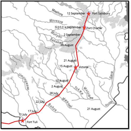 Map of the route taken in 1890 by the Pioneer Corps and British South Africa Company’s Police