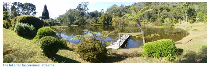 - The 159 hectares of landscaped botanical gardens are built around perennial streams which flow into a small lake and there are sheltered walks between the stately indigenous tree ferns and azaleas and the strategically positioned flower beds which are encountered as the visitor wanders through the gardens.