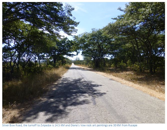 From the intersection of the Harare to Mutare Road (A3) and turnoff to Nyanga (A14): drive along the A14 towards Nyanga, 0.95 KM turn left onto tar road which is signposted: Silver Bow Road / Harleigh Farm ruins 15 KM / Diana’s Vow rock paintings 30 KM. At 14.5 KM turn right at the former Harleigh Farm tobacco barns, but see the guide recommendation below. Follow the farm track 0.5 KM and turn left at the fork passing a number of resettled farmers, 1.7 KM turn left at the intersection, 2.0 KM turn right at the fork. 2.1 KM turn left for the rock paintings which are signposted and 80 metres away. 2.3 KM reach Zvipadze Monument No 1 parking area. The Monument walls are clearly visible 70 metres to the left. To reach Zvipadze monument No 2 follow the farm track another 500 metres.