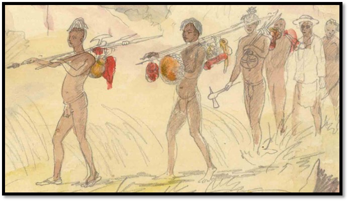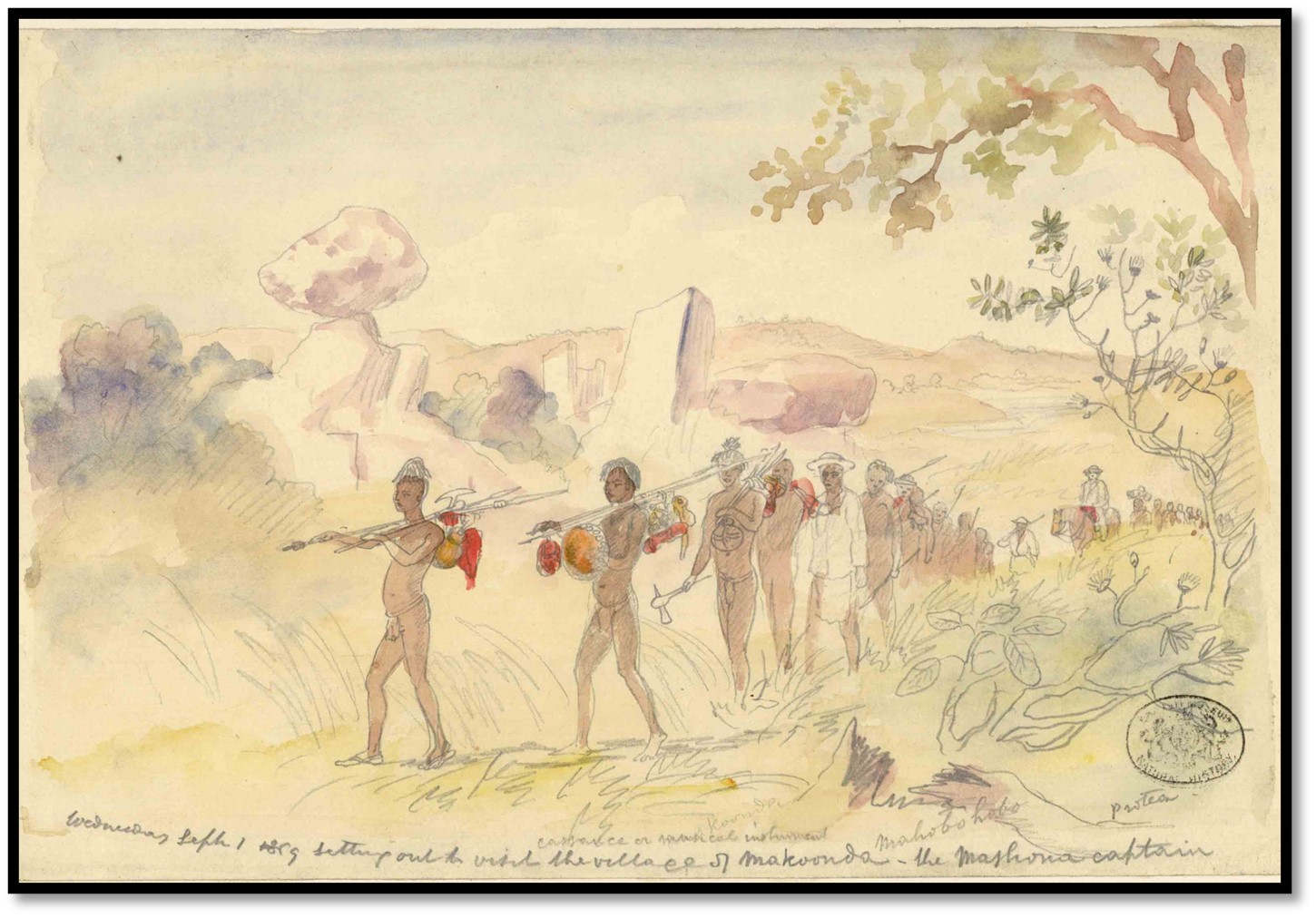 Natural History Museum (London) Baines Collection No. 18: Setting out to visit the village of Amakoonda – 1 September 1869