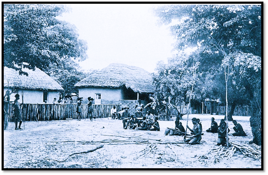 He writes: “I went to see Lewanika, whom I found sitting in his ‘lekhothla’ or courtyard, in the centre of the town, with a crowd of people kneeling in semicircles before him, near or far according to their rank. The deep, yielding sand is a merciful provision for those who have to remain in this position for hours together. I was graciously received and could not but feel that at last I was face to face with a real African king, compared with whom the many I had seen were but insignificant. Lewanika was plainly dressed in English clothes and sat on an ordinary cane bottom chair, his manner was affable and free. In front of him were his band of drummers and marimba players. Each company of men, as they assembled at the evening council, while still at some distance began clapping their hands in unison and before taking their places raised their hands above their heads and shouted the royal salutation, ‘Yo sho, yo sho, yo sho, Tau Tuna’ (great lion) After kneeling, they continue clapping, and bow their faces to the earth three times.“