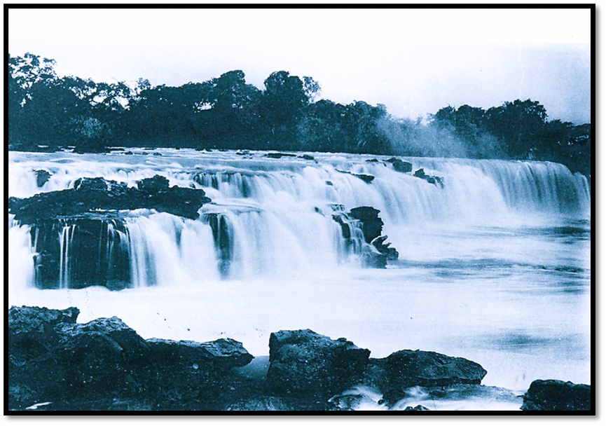 Yesterday as the day cleared up, I got a few boys and with my photo apparatus trudged off to the falls of Gonya. After four hours on the rocks, alternately scorched by the sun and drenched by the rain, we retraced our steps, gratified beyond measure for the privilege of having been permitted to view the falls, cascades, and rapids of Gonya.
