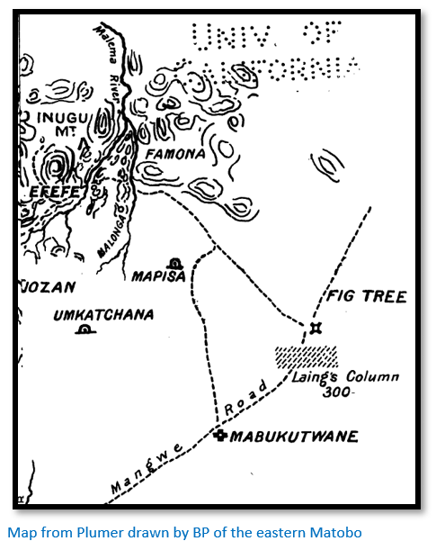 Yet only a very brief reconnaissance was carried out by BP prior to Tyrie Laing and his force being ordered into the Inugu valley and he was not provided with any individuals who knew their way in this part of the western Matobo Hills.