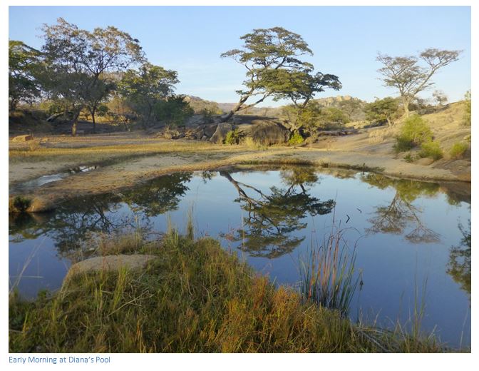 Situated within the Matobo Communal lands, the word ‘Embizeni’ (Place of the Pots) is derived from the potholes the rain water has carved into the granite rocks over a lengthy geological period and Diana’s Pools was named after the wife of the first Native Commissioner in the area, JP Richardson.