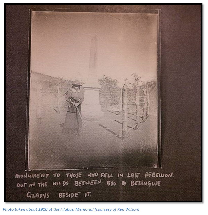 - The Filabusi Rebellion Memorial which was erected to commemorate those killed in late March 1896 was pushed over by vandals in 2016. Fortunately the Museum of Natural History of Zimbabwe – Bulawayo rescued the remains of the Memorial and has re-erected it within the grounds of the Museum in Bulawayo.