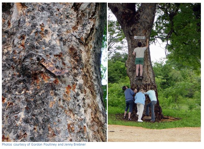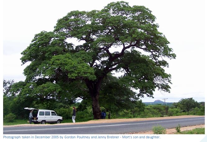 With a height of 22 metres and crown spread of 24 metres in 1988, this magnificent tree must have been noticed and remarked upon by thousands of visitors travelling from Beit Bridge to Bulawayo, or the Victoria Falls. What most travellers would not have known was that this tree was spared from felling by the Department of Roads many years ago by the action of Harold Mortimer “Mort” Poultney.