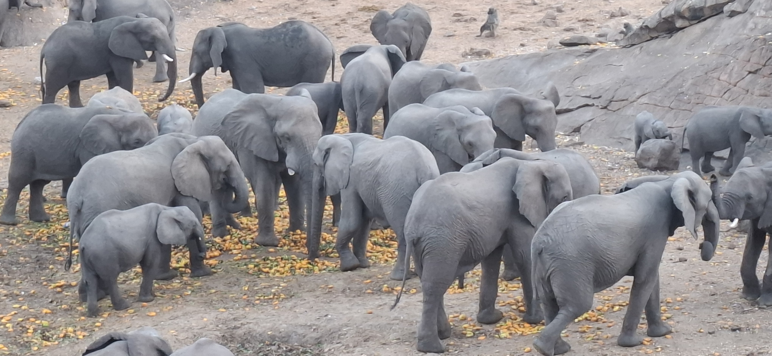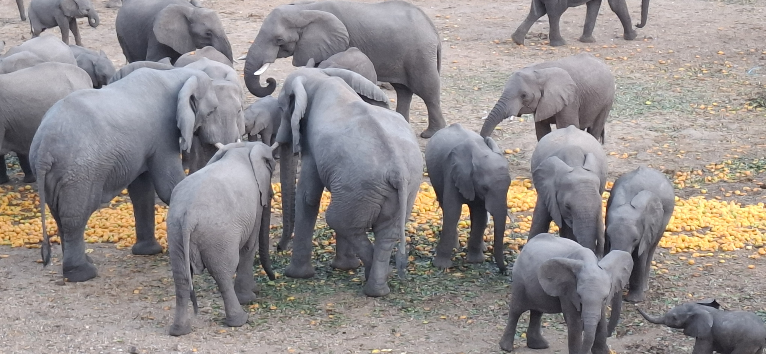 - A truly amazing experience to watch the elephants, eland, impala and baboon feeding on the orange pulp as the sun goes down. As the darkness descends, the elephants stride in silently, either singly or in small groups, and gather in the artificial light.