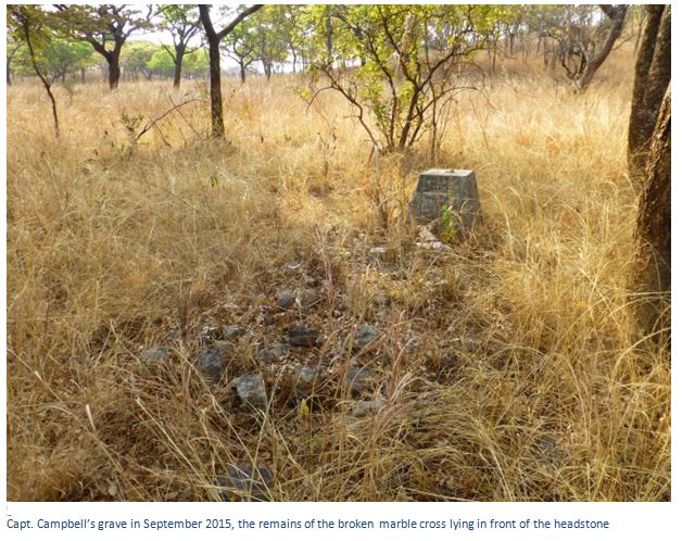 The book The Downfall of Lobengula by Wills and Collingridge has a short biography of Captain Campbell, but states his full name is John Alexander Livingstone Campbell, whereas the gravestone states John Lamont Campbell. As the gravestone was erected by his father, Colonel Campbell, I can only assume that in their haste to publish their book the authors did not sufficiently check their sources.