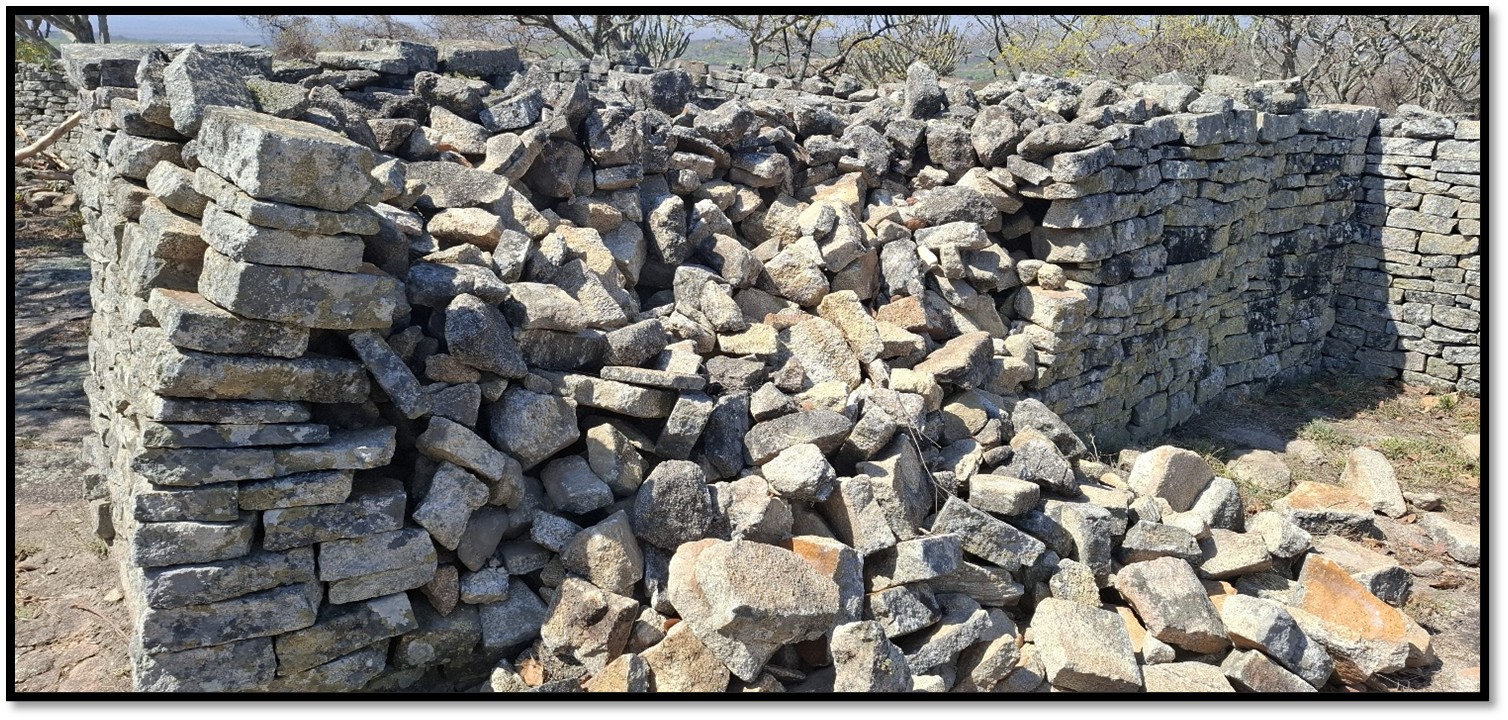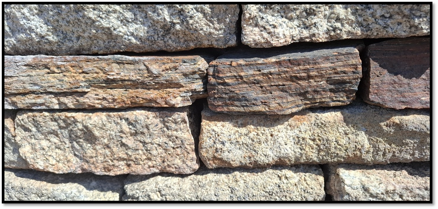 Photo showing a row of banded ironstone rocks to provide a colour contrast in the Naletale walling