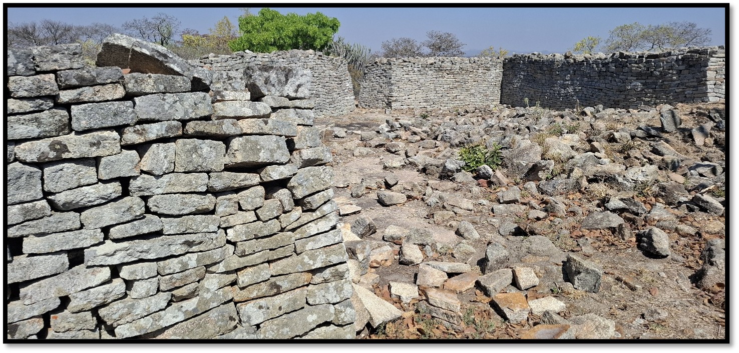 Danan’ombe Monument, a few kilometres away, circa 1550 AD was the capital of the Torwa State, often called Butua in early sixteenth Century maps and the central hut at Naletale in the 1550’s may well have been the home of a sub-chief ruled by the King at Danan’ombe before it came to prominence and flourished about 1680 AD.