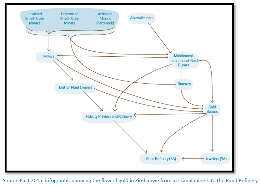 PACT: A Golden Opportunity: Scoping Study of Artisanal and Small Scale Gold Mining in Zimbabwe, 2015, http://www.pactworld.org/library/golden-opportunity-artisanal-and-small-..., p.