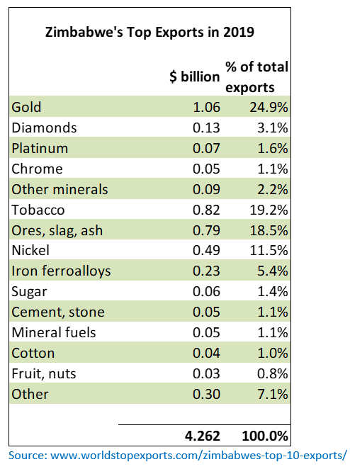 Zimbabwe has a Gross Domestic Product (GDP) of approximately $40.3 billion[iv] with exports now forming 10.6% of the total GDP and with a population of 14.645 million in 2019[v] exports represent $291 for every Zimbabwean with gold exports averaging $72 per person.