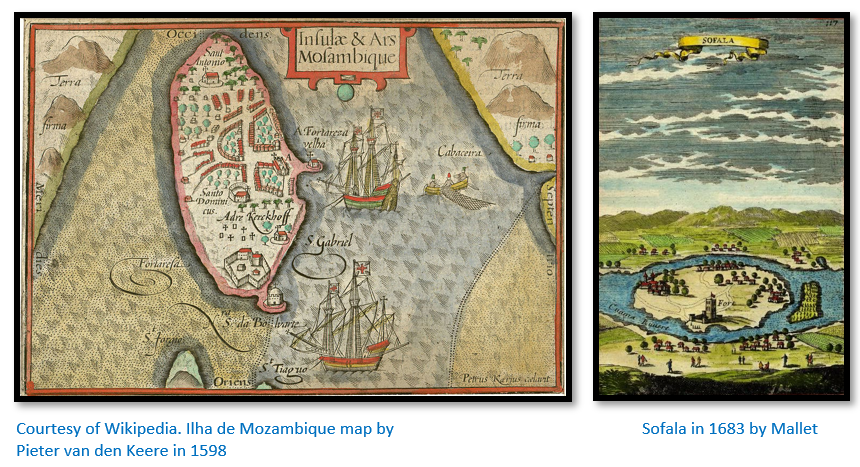 Sofala was connected by the Buzi River to the gold fair (feira) at Manica and from there to the gold fields of Munhumutapa in present-day Zimbabwe. Sofala was a small trading post in the 10th century but grew steadily after being merged in the 1180’s into the Kilwa Sultanate and the Swahili trade network that included river-going dhows up the Buzi and Save rivers to bring the gold from the interior to the coast.