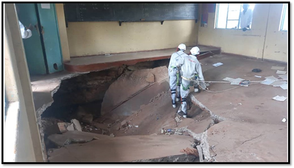 For families living at Kwekwe unchecked and unregulated ASM caused a classroom collapse at Globe and Phoenix Primary School and fourteen children were injured when the class caved in as illegal small-scale miners burrowed beneath the pillars that had held the school up for more than a century. Although only one classroom collapsed the Department of Civil Protection said the whole area was in danger, the school was permanently shut down and 900 of the 1,500 children were transferred to the neighbouring school, while others use offices at the Globe and Phoenix Mine as classrooms.[18]