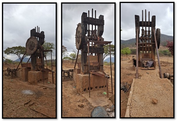 An old 3-stamp mill commonly still in use at Zimbabwean artisanal mine sites – this example could be 100 years old