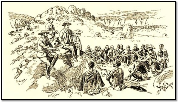 A sketch of the First Indaba by Lt-Col (later Lord) Robert Baden-Powell who was at Fort Umlugulu